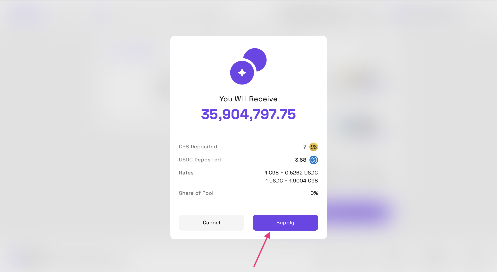 Step 4: 정보를 꼼꼼히 확인한 후, 다시 한 번 Supply를 클릭합니다.