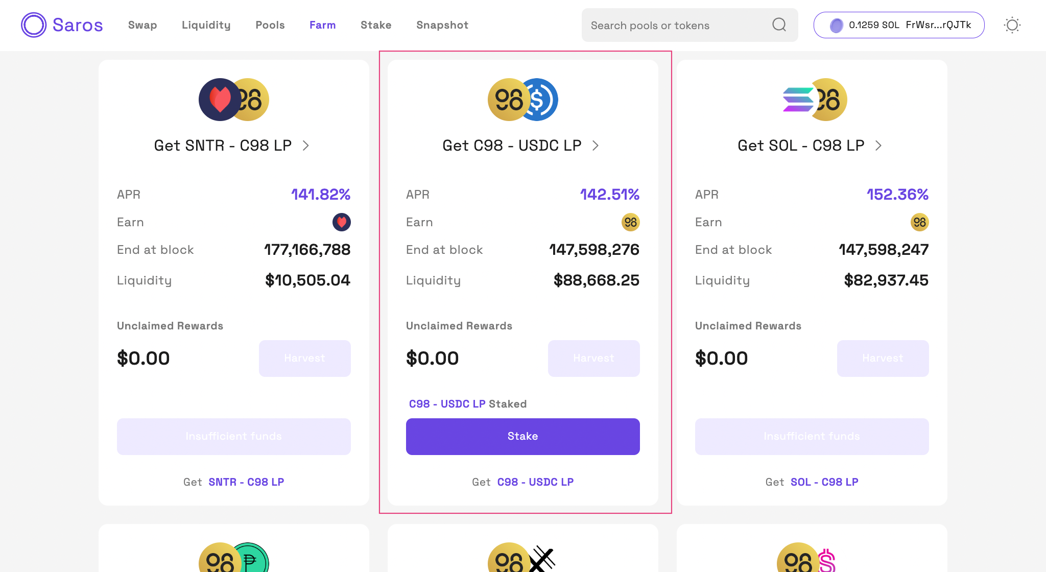 SarosFarm 접속: https://saros.finance/farm