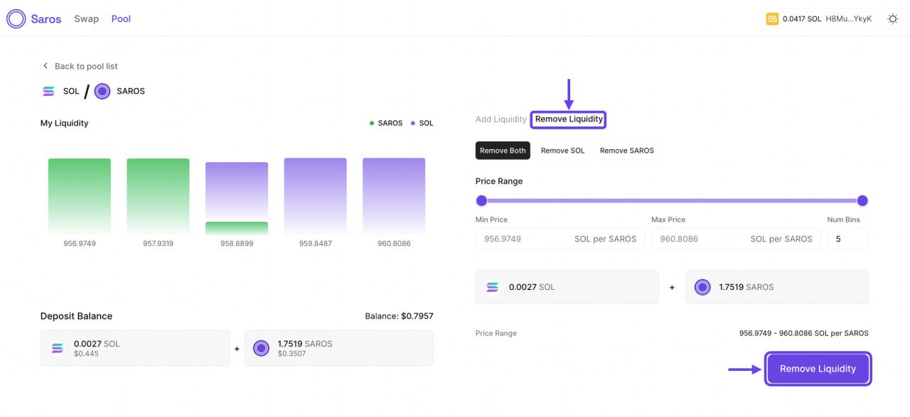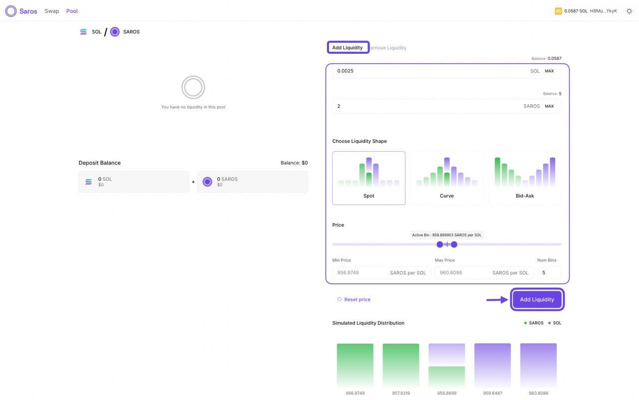 이 가이드는 Saros DLMM에서 유동성을 추가하고 제거하는 방법을 자세히 설명합니다.