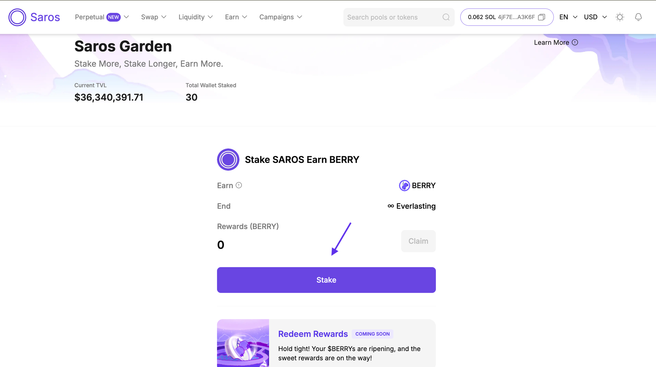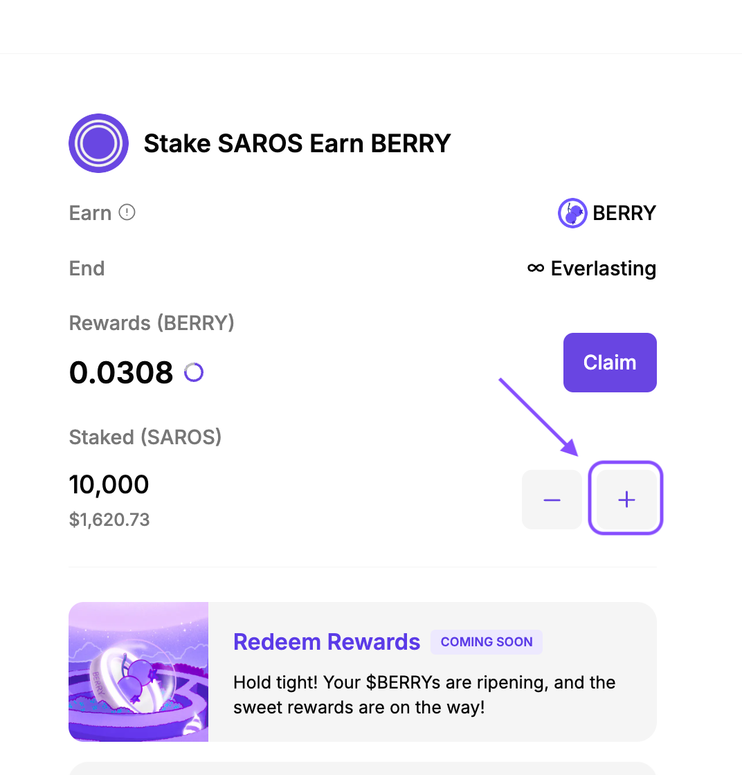 SAROS 스테이킹하고 BERRY 얻기