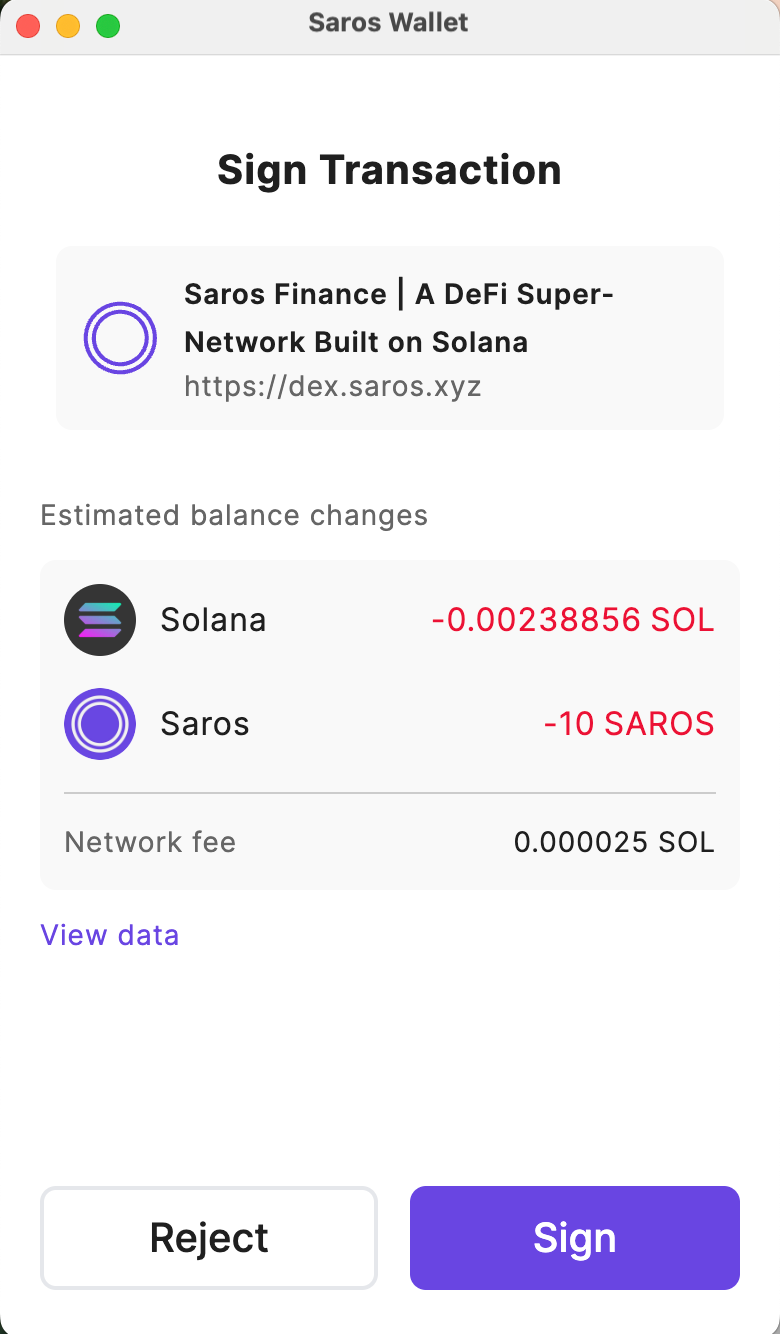 Step 4: 지갑에 나타난 요청을 확인하고 서명합니다.