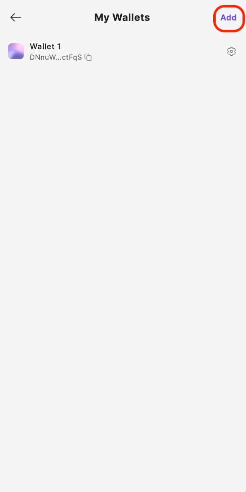 Step 2: Click the Wallet section at the top left corner, then Add button