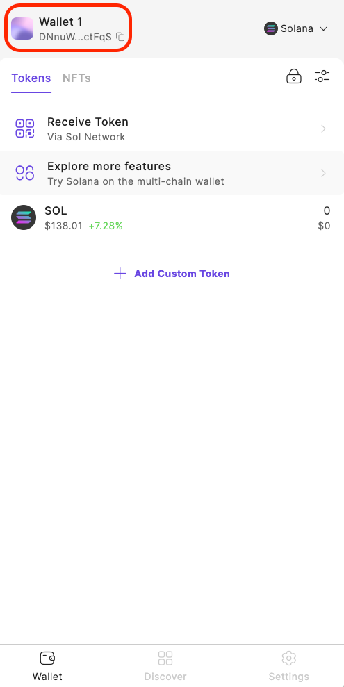 Step 1: On the home page of Saros Wallet Extension, click on the Wallet section at the top left corner;